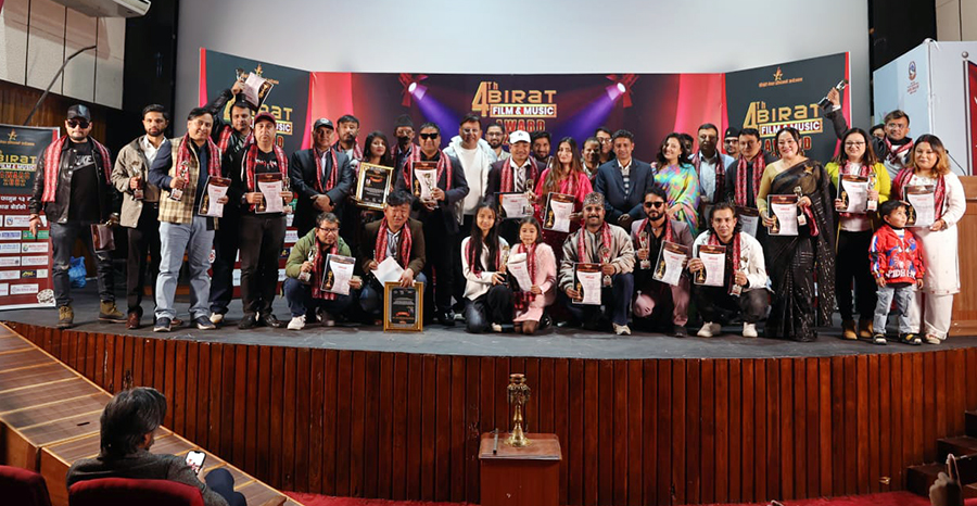१४ फागुन, काठमाडौँ। नेपाली गीत–संगीत तथा चलचित्र क्षेत्रका स्रष्टालाई अवार्ड र सम्मान प्रदान गर्ने उद्देश्यले आयोजना हुँदै आएको ‘विराट फिल्म एन्ड म्युजिक अवार्ड’को चौथो संस्करण चलचित्र विकास बोर्डको हलमा भब्य र