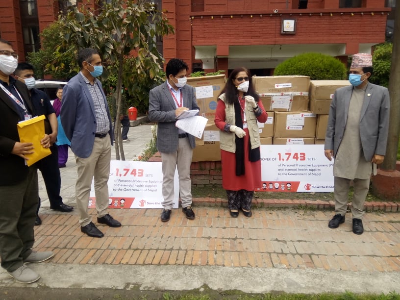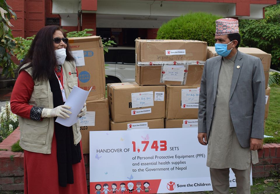सेभ द चिल्ड्रेनले १ हजार ७ सय ४३ सेट व्यक्तिगत सुरक्षा सामग्री ९पीपीई० सहित विभिन्न स्वास्थ्य सामग्री हस्तान्तरण गरेको छ । इन्फ्रारेड थर्मोमिटर, एन–९५ मास्क, कार्डिआक मोनिटर, इलेक्ट्रिक सक्सन मेसिन, ईसीजी मेसिन लगायतका सामग्री उपलब्ध गराउँदै थप २ हजार पीपीई खरिद प्रक्रियामा रहेको सेभ द चिल्ड्रेनको अन्तरिम राष्ट्रिय निर्देशक बन्दना रिसालले जानकारी दिनुभयो ।