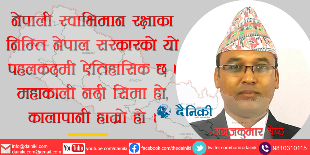 नेपाल सरकारको ध्यान सिमानामा बस्ने जनताको जीवनस्तर उठाउने तर्फ जानुपर्छ। छाङरु हुदै अब कालापानी, लिपुलेक, छाङ्ग, नावी, टिङ्कर, गुंजीदेखि लिम्पीयाधुरासम्म नेपाली फौजको उपस्थिति पुर्‍याउनुपर्छ । नेपाली स्वाभिमान रक्षाका निम्ति नेपाल सरकारको यो पहलकदमी ऐतिहासिक छ । कालापानीमा मिचिएको भूमि फिर्ता लिने महाअभियानमा कोसेढुङ्गा साबित हुनेछ। इतिहासमा यो दिन अवश्य सुनौलो अक्षरमा लेखिनेछ । महाकाली नदी सिमा हो, कालापानी हाम्रो हो ।
