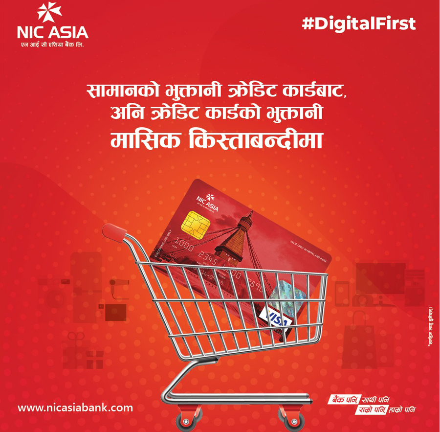 ८ मंसिर, काठमाडाैँ । एनआईसी एशिया बैंकले क्रेडिट कार्डमार्फत देशभरका जुनसुकै पीओएस मर्चेन्टहरूमा कार्ड स्वाइप गरी भुक्तानी गर्दा उक्त खरिद रकमलाई मासिक किस्ताबन्दीमा रुपान्तरण गर्न सकिने ‘इन्स्टा बाई योजना’बाट सञ्चालनमा ल्याएको छ । समयअनुरुप ग्राहकमैत्री उत्कृष्ट योजना ल्याउने क्रममा बैंकले आफ्ना क्रेडिट कार्ड प्रयोगकर्ताहरूलाई एकै पटकमा खरिद सामग्री तथा सेवाहरूको सम्पूर्ण खरिद रकम भुक्तानी गर्न एवं आफ्नो आयस्रोत अनुसारको किस्ता अवधि छनौट गर्न सकिने नविनतम सुविधा ल्याएको हो ।
