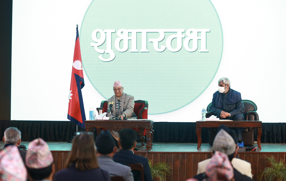 १४ माघ, काठमाडाैँ । बुधबार कोरोना भाइरसविरुद्धको ‘कोभिशिल्ड’ खोपको शुभारम्भ गरिएको छ । बुधबार बिहान १० बजे प्रधानमन्त्री केपी शर्मा ओलीले प्रधानमन्त्री निवास बालुवाटारबाट भर्चुअल विधिबाट खोपको शुभारम्भ गर्नुभएको छ । प्रधानमन्त्रीले शुभारम्भ गरेसँगै बुधबार नै सातवटै प्रदेशमा रहेका ६२ अस्पताल, उपत्यकाका १७ अस्पताल र १२० भन्दा बढी खोप केन्द्रबाट सूचीकृतमा परेका व्यक्तिलाई एकैसाथ खोप दिइएको छ । यस्तै ७७ जिल्लाका ३०० खोप केन्द्रमार्फत पनि खोप प्रदान गरिने छ । ती सबै अस्पतालमा प्रधानमन्त्री ओलीको शुभारम्भ कार्यक्रममा भर्चुअल विधिबाट जोडिएका छन । तस्बीरहरूः रासस