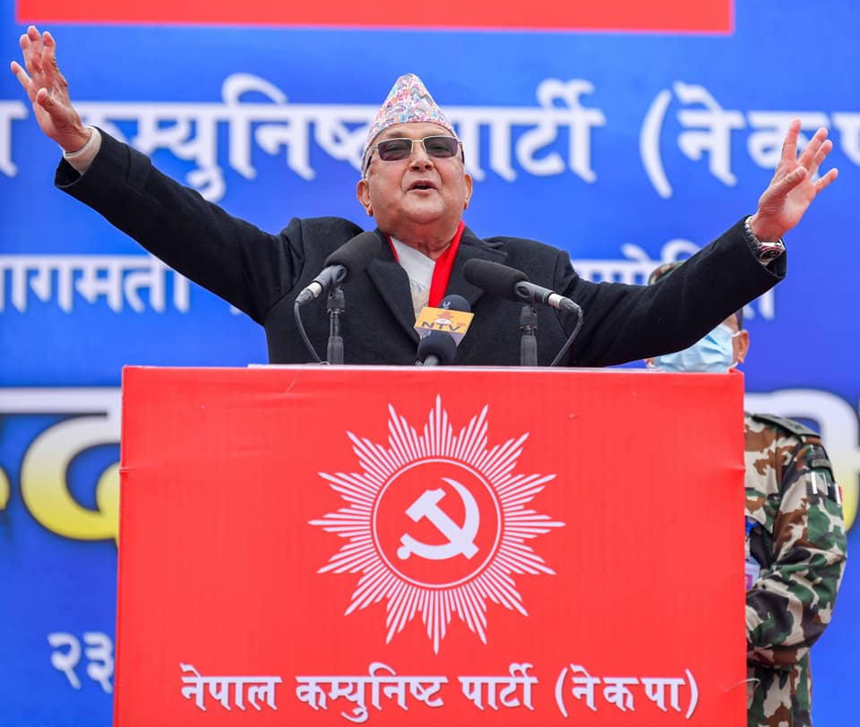 जनसभामा सम्बोधन गर्दै प्रधानमन्त्री ओलीले यो कास्टिङ्ग मात्र भएको भन्दै आफू नेतृत्वको नेकपा देशकै मूलप्रवाह बोकेको पार्टी रहेको घोषणा गर्नुभएको छ । उहाँले भन्नुयो ‘यो आन्दोलन कास्टिङ्ग मात्र हो, हामीले साच्चै आमसभा गर्नुपरे काठमाडौंका सबै सडकमा साउन्ड सिष्टम राखेर आमसभा गर्नुपर्ने दिनपनि आउन सक्छ ।’ जनसभा तस्बीरमा हेर्नुहोस ।