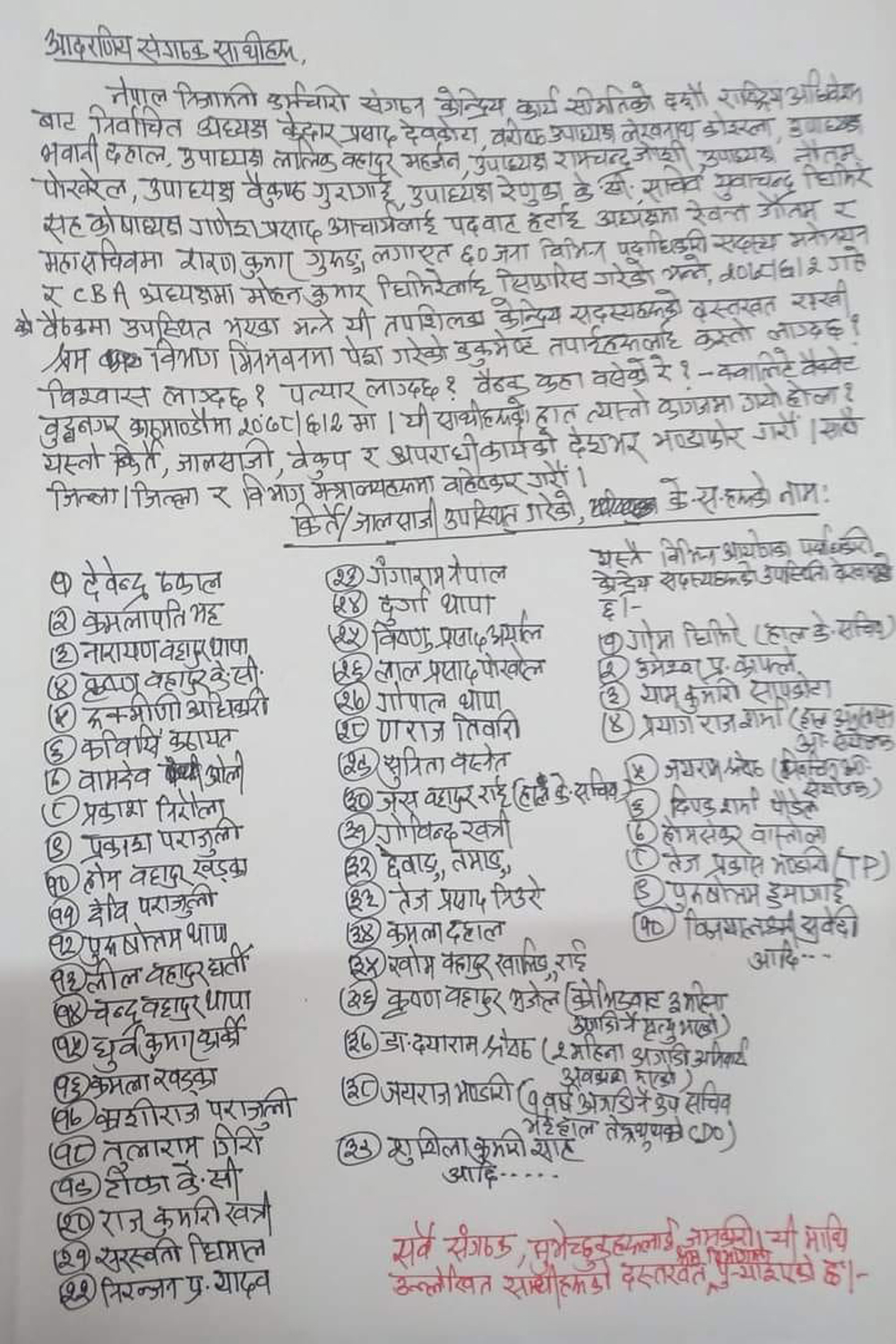 त्यसरी सूचना दिनेमा कर्मचारी नेता देवेन्द्र ढकाल लगायतका रहेका छन । मोहन घिमिरेको समूहले माइन्युट कब्जा गरी कीर्ते हस्ताक्षर गरेका मध्ये ४९ जनाले आफूहरूको हस्ताक्षर कीर्ते भएको भन्दै सामूहिक विज्ञप्ति समेत जारी गरिसकेका छन ।