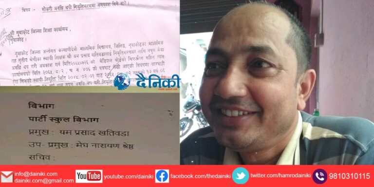 कीर्ते रिपोर्टले शिक्षकबाट निबृतिभरण लिएका खतिवडा एमाले नुवाकोटको स्कुल विभाग प्रमुख