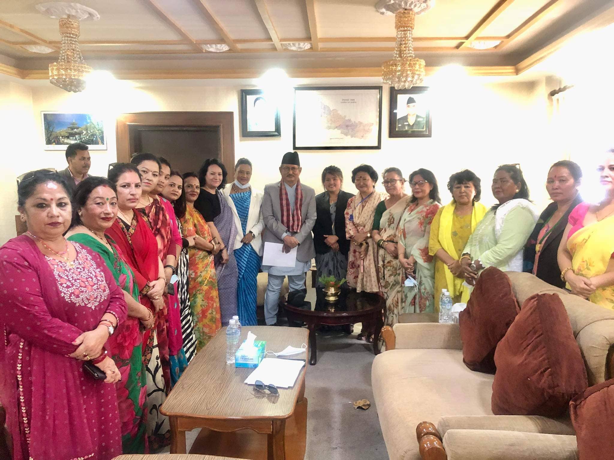 संगठनकी अध्यक्ष अञ्जना शाह रावलको नेतृत्वमा गएको प्रतिनिधिमण्डलले गृहमन्त्री खाँडलाई ज्ञापनपत्र बुझाएको हो । सो अवसरमा पार्टीकी महामन्त्री कुन्ती कुमारी शाहीको पनि उपस्थिति थियो ।