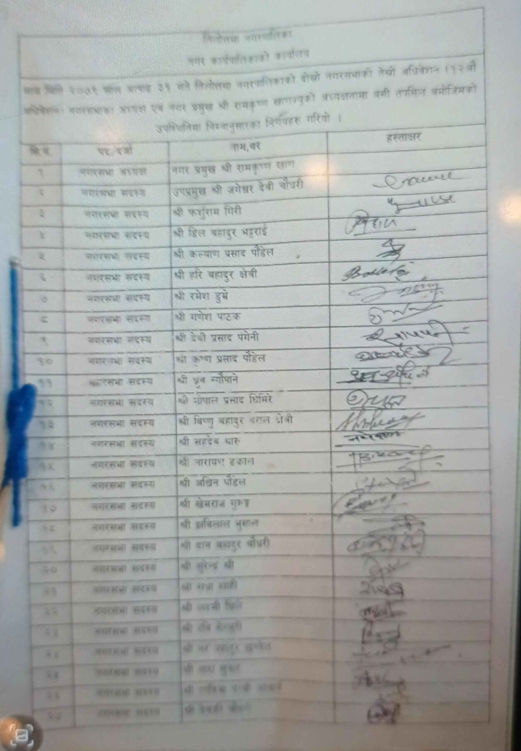 फर्जी माईन्यूट खडा गरी तिलोत्तमाका नगरप्रमुखले नगरसभा नै स्थगित गरे