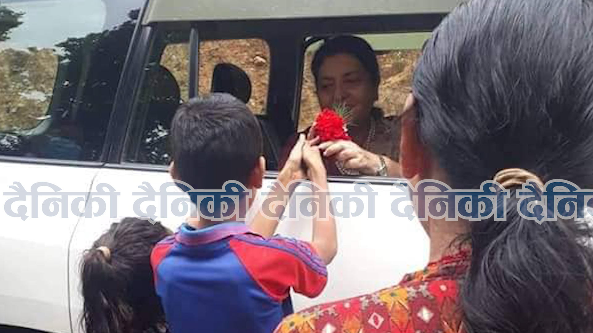 राष्ट्रपति भण्डारीले गाडी राेकेर जब बालबालिकासँग हात मिलाइन..