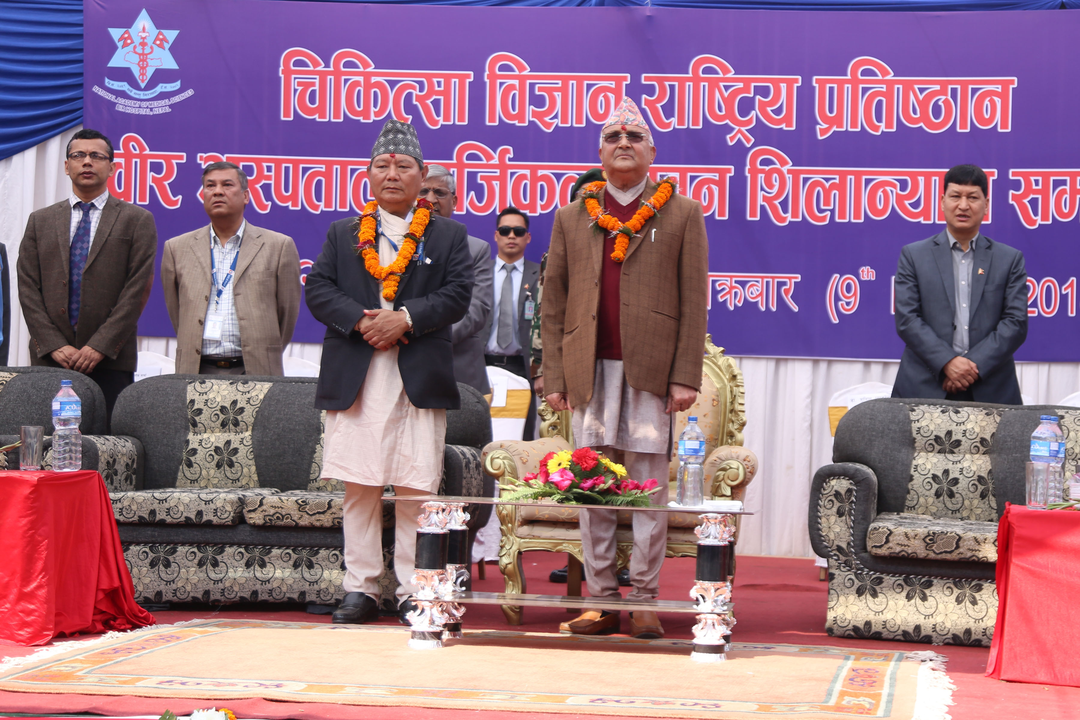 प्रधानमन्त्री ओलीद्वारा वीर अस्पताल सर्जिकल भवनको शिलान्यास