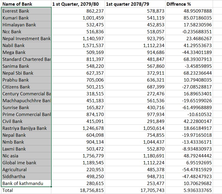 वाणिज्य बैंकहरुको नाफा ५.९४ प्रतिशतले बढ्यो, कुन बैंककाे कति ? (विवरणसहित)