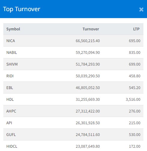 आज २३१ कम्पनीको ३९ लाख ७१ हजार ५९४ कित्ता सेयर किनबेच हुदाँ १ अर्ब २९ करोड ६ लाख ६४ हजार ६४१ रुपैयाँको कारोबार भएको छ । आज एनआईसी एशिया बैंकको सेयर सर्वाधिक खरिद बिक्री भएको छ । कम्पनीको ६ करोड ६५ लाख ६० हजार रुपैयाँको कारोबार भएको हो ।