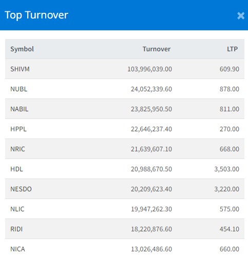 आज ७७ करोडको मात्रै कारोबार हुँदा शिवम सिमेन्टको सेयर सर्वाधिक खरिद बिक्री भएको छ । कम्पनीको आज १० करोड ३९ लाख ९६ हजार रुपैयाँको कारोबार भएको छ ।