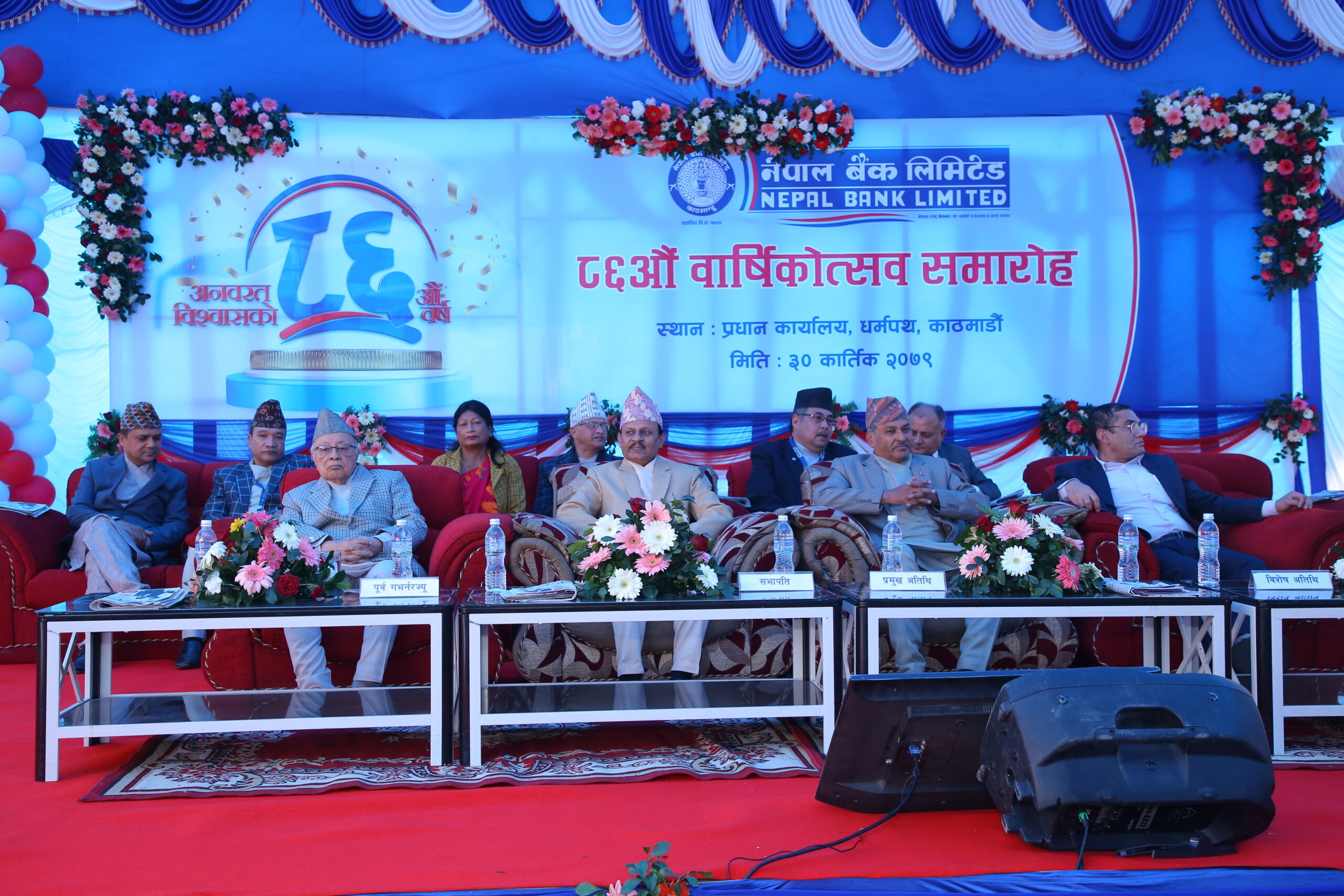 समारोहलाई सम्बोधन गर्दै प्रमुख अतिथि नेपाल राष्ट्र बैंकका गभर्नर महाप्रसाद अधिकारीले नेपालको पहिलो बैंक ८६ बर्षमा प्रबेश गरेको उपलक्ष्यमा शुभकामना प्रकट गर्दै नेपालको बैंकिङ्ग बिकास र उद्यमशिलताको प्रबद्र्धनमा नेपाल बैंकको अतुलनिय भूमिका रहेको र प्रत्यकबर्ष कार्तिक ३० गतेलाई नेपालको बैंकिङ् क्षेत्रको ऐतिहासिक बैंकिङ्गदिवसको रुपमालिन सकिने विषयमा जोड दिएका थिए ।