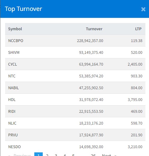 त्यस्तै, शिवम् सिमेन्ट्सको ९ करोड ३१ लाख, सिवाइसी नेपाल लघुवित्तको ६ करोड ३९ लाख, नेपाल टेलिकमको ५ करोड ३३ लाख र नबिल बैंकको ४ करोड ७२ लाख रुपैयाँमाथिको कारोबार भएको छ ।