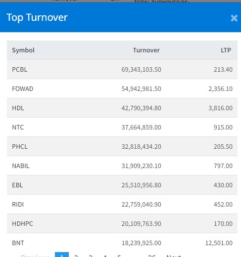 साथै, फरवार्ड लघुवित्त वित्तीय संस्थाको ५ करोड ४९ लाख ४२ हजार रुपैयाँ, हिमालयन डिस्टलरीको ४ करोड २७ लाख ९० हजार रुपैयाँ, नेपाल टेलिकमको ३ करोड ७६ लाख ६४ हजार रुपैयाँको कारोबार भएको छ ।