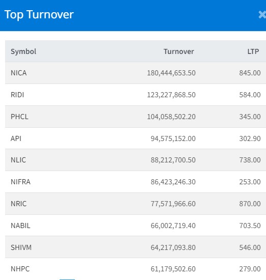 साथै, रिडी पावरको १२ करोड ३२ लाख, पिपुल्स हाइड्रोपावरको १० कराृेड ४० लाख रुपैयाँ र अपि पावरको ९ करोड ४५ लाख रुपैयाँको कारोबार भएको छ ।