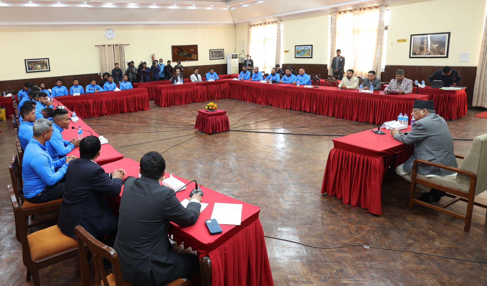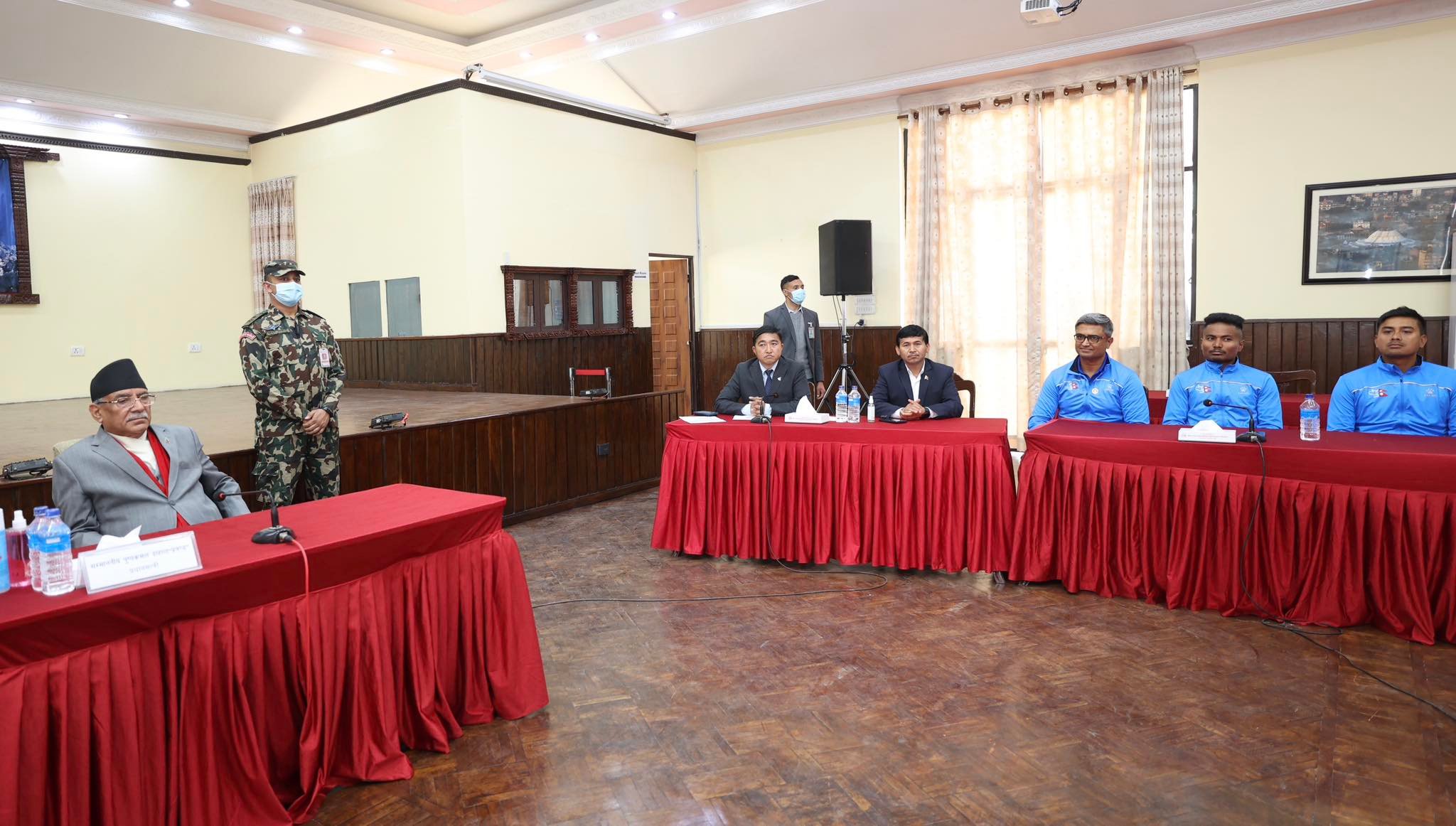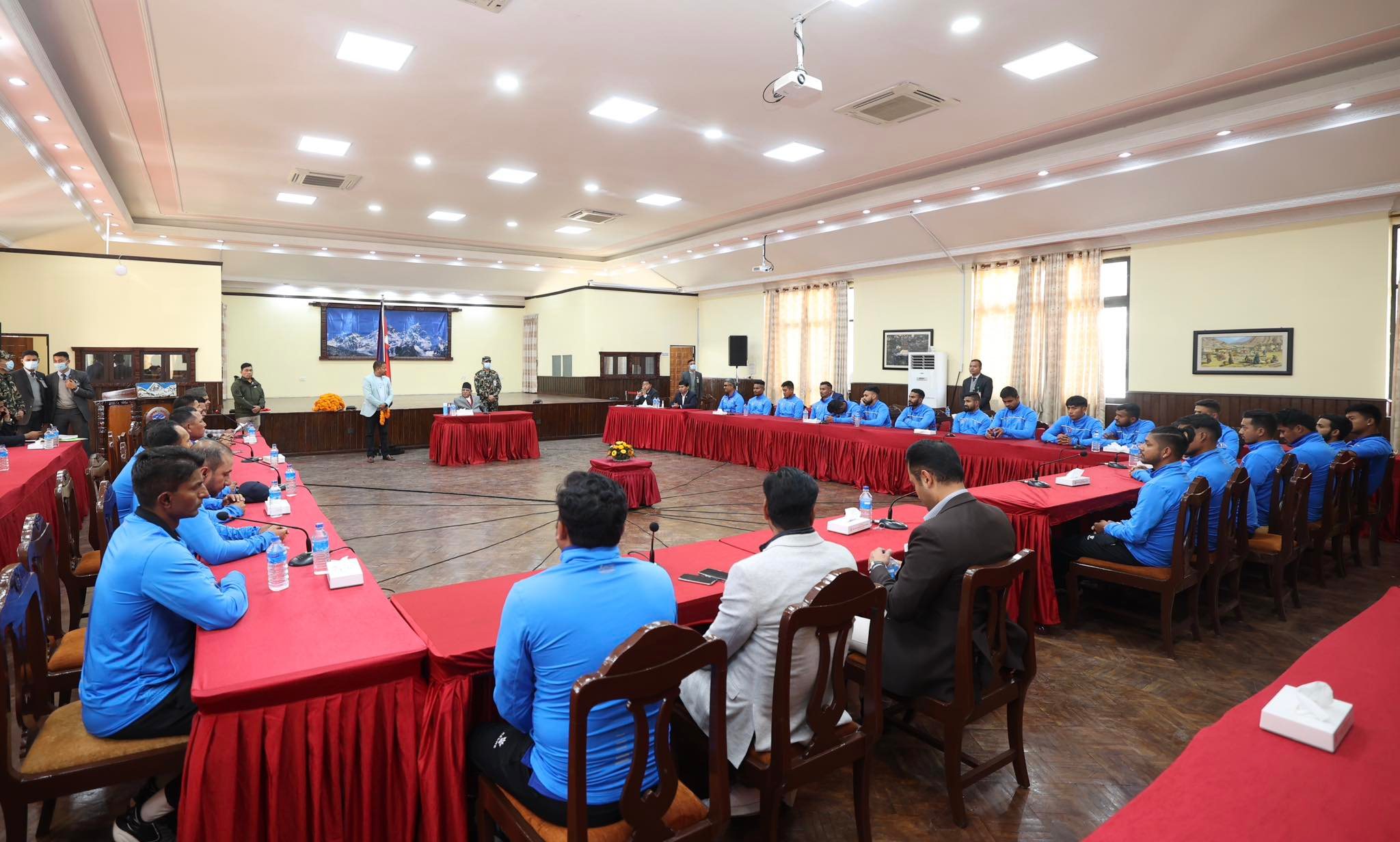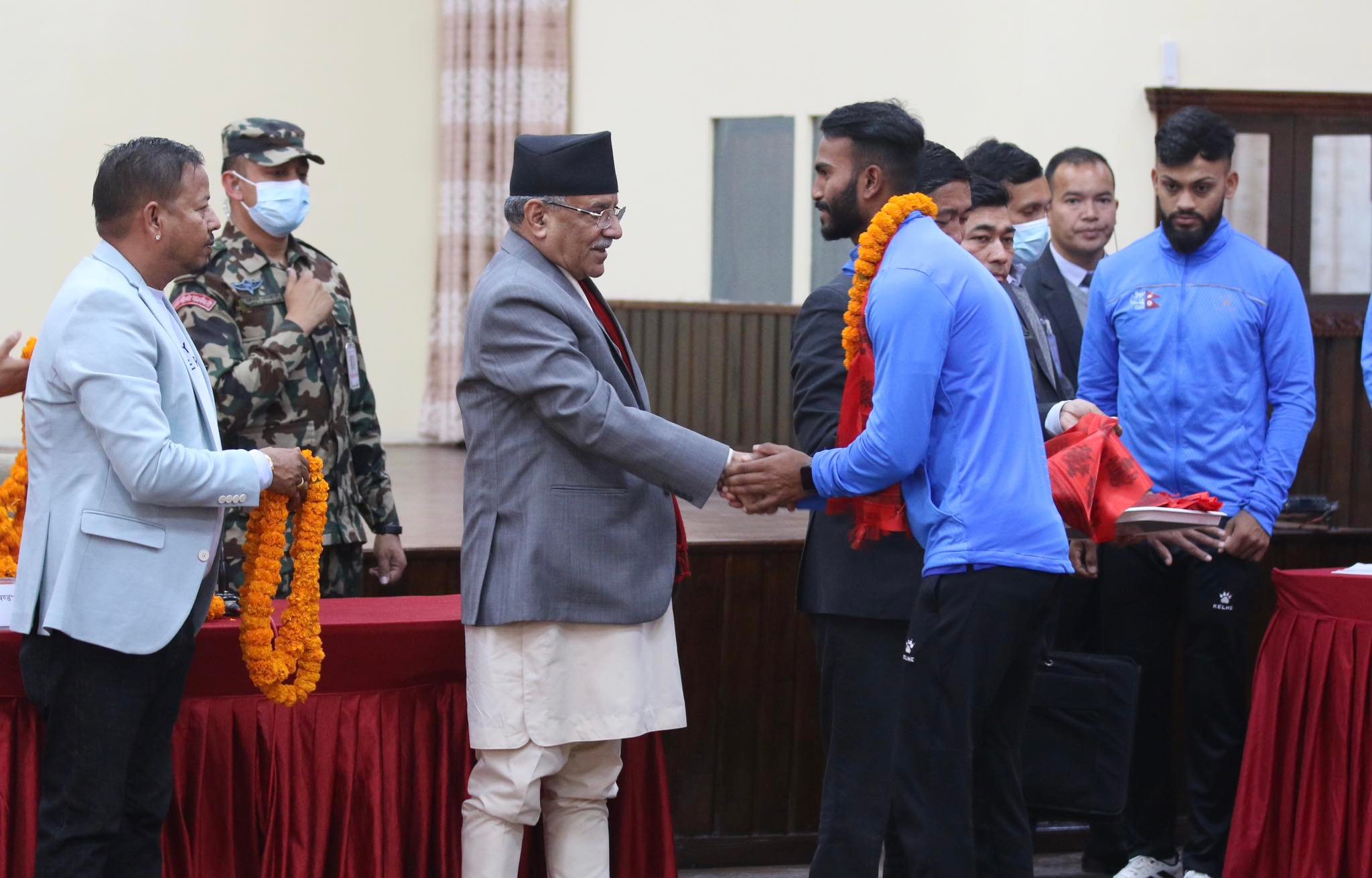 ११ फागुन, काठमाडौँ । बलात्कार आरोपी सन्दिप लामिछाने जेलमुक्त भएपछि प्रधानमन्त्री पुष्पकमल दाहाल “प्रचण्ड”सँग पहिलो पटक हाल मिलाए (हस्तमिलान)का छन । आइसिसी विश्वकप लिग–का विजेता खेलाडीलाई बिहीबार प्रधानमन्त्री निवासमा बोलाएर प्रधानमन्त्रीले हात मिलाउँदै बधाइ दिए । उनले लिग–का विजेता खेलाडीलाई प्रतिव्यक्ति दुईलाख रूपैयाँ पुरस्कार दिने घोषणा समेत गरेका छन । कार्यक्रमको तस्बिरहरू तल हेर्नसक्नुहुन्छ । तस्बिरहरूः प्रदीपराज वन्त/ प्रधानमन्त्रीको स्वकीय सचिवालय