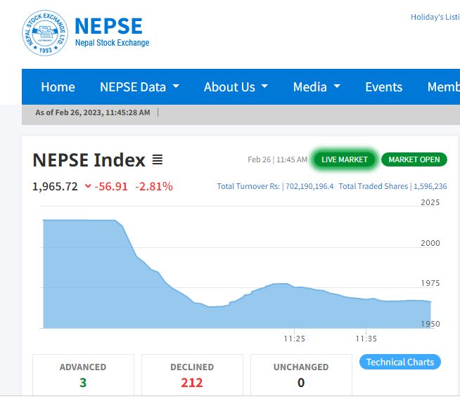 सेयर बजारमा पहिराेः कारोबार खुलेको १ घण्टा नहुँदै ५६.९१ अंकले घट्यो नेप्से