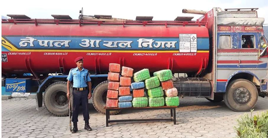 ट्यांकरमा लुकाएर भारत लैजाँदै गरेकाे ३ सय किलो गाजा सहित प्रल्हाद ठकुरी पक्राउ