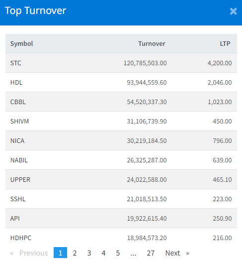 साथै, हिमालयन डिष्टिलरीको ९ करोड ३९ लाख रुपैयाँ, छिमेक लघुवित्तको ५ करोड ४५ लाख रुपैयाँ, शिवम सिमेन्टको ३ करोड ११ लाख रुपैयाँ र एनआइसी एशिया बैंकको ३ करोड २ लाख रुपैयाँको कारोबार भएको छ ।