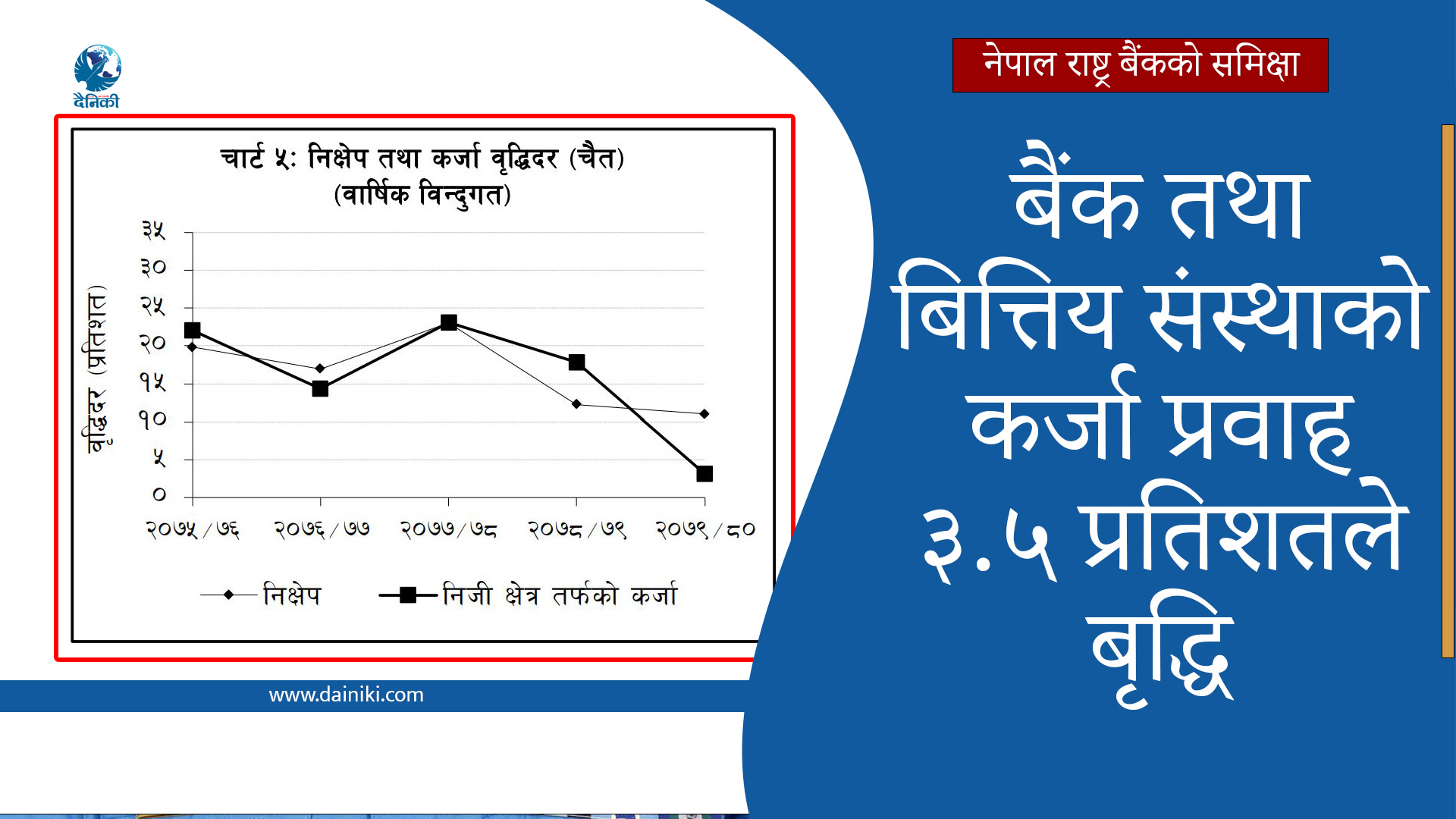 बैंक तथा वित्तीय संस्थाको कर्जा प्रवाह ३.५ प्रतिशतले बढ्यो, कुन क्षेत्रमा कति ?