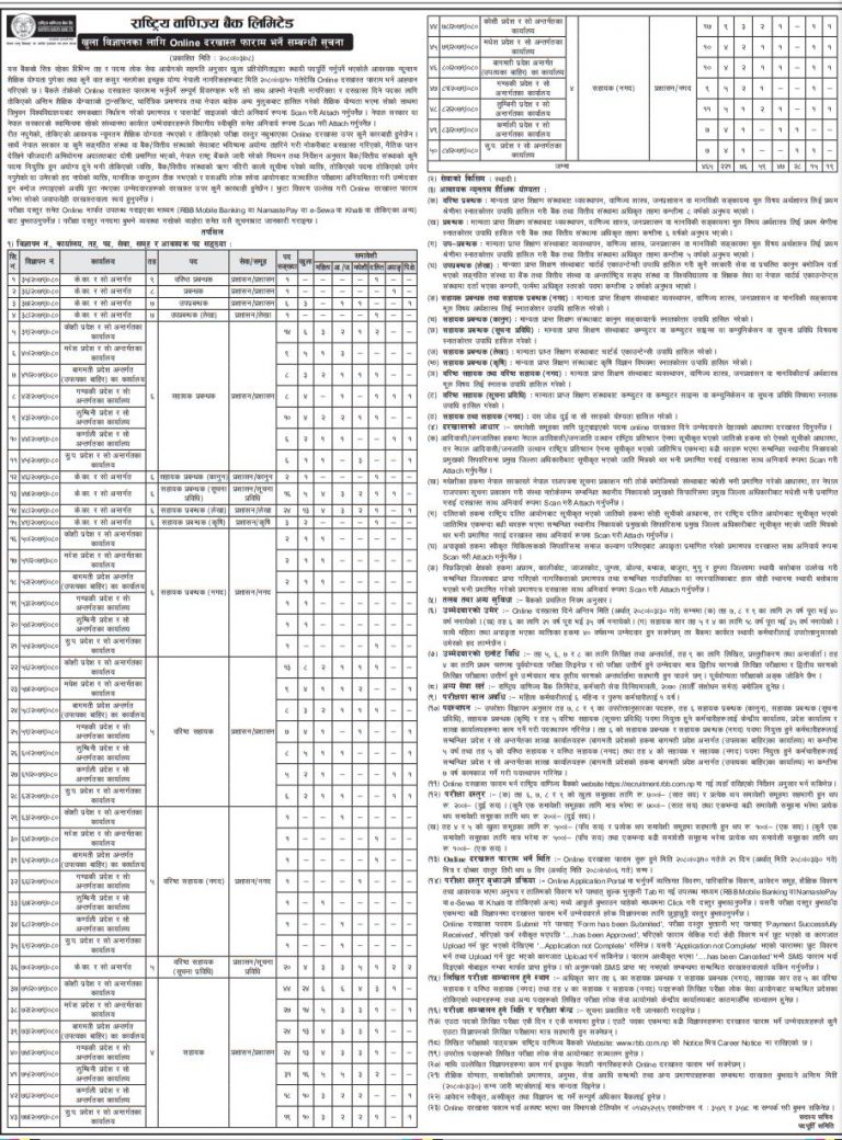 बैंकले विभिन्न पदमा सबै प्रदेशमा खुला प्रतिस्पर्धाबाट कर्मचारी भर्ना गर्ने भएको छ । इच्छुक उम्मेदवारले असार १० गतेदेखि अनलाइन आवेदन दिन सक्नेछन्। दरखास्त पेस गर्ने अन्तिम मिति असार ३० गतेसम्म तोकिएको छ। आवेदन दिँदा लाग्ने शुल्क पनि अनलाइनबाट नै भुक्तानी गर्नुपर्ने छ । चौथो र पाँचौ तहका लागि आवेदन दिन ५०० र ६ देखि ९ तहसम्मका लागि ७०० रुपैयाँ लाग्ने छ ।