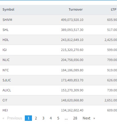 आज शिवम् सिमेन्ट्सको सेयरमा लगानीकर्ताहरु झुम्मिएका छन् । कम्पनीको आज ४९ करोड ९० लाख रुपैयाँ बराबरको सेयर कारोबार भएको छ। त्यस्तै, सोल्टि होटल, हिमालयन डिष्टिलरी, आईजीआई प्रुडेन्सियल, नेपाल लाइफ, नेपाल टेलिकम, सूर्य ज्योति लाइफ, एशियन लाइफ नागरिक लगानी कोष र हिमालयन एभरेष्टको सर्वाधिक कारोबार भएको छ ।