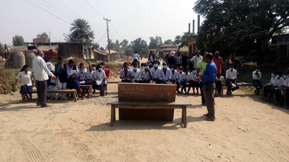 वडाध्यक्षले नै विद्यालयमा डोजर चलाएपछि विद्यार्थीले सडकमै बसेर पढे (फोटोफिचर)