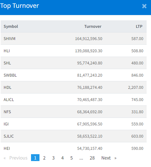 आज शिवम सिमेन्टको सेयर सर्वाधिक खरिद बिक्री भएको छ । कम्पनीको आज १६ करोड ४९ लाख रुपैयाँको कारोबार भएको छ । साथै, हिमालयन लाइफको १३ करोड ९० लाख रुपैयाँ, सोल्टी होटलको ९ करोड ५७ लाख रुपैयाँ, स्वाबलम्बन लघुवित्तको ८ करोड १४ लाख रुपैयाँ र हिमालयन डिष्टीलरीको ७ करोड ६१ लाख रुपैयाँको कारोबार भएको छ ।