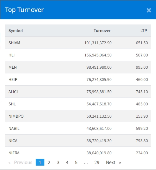 आज शिवम सिमेन्टको सेयर कारोबार सर्वाधिक भएको छ । कम्पनीको १९ करोड रुपैयाँको सेयर खरिद बिक्री भएको छ । त्यस्तै, हिमालयन लाइफ इन्स्योरेन्सको १५ करोड रुपैयाँको कारोबार भएको छ । साथै, आज माउण्टेन इनर्जी नेपाल, हिमालयन एभरेष्ट इन्स्योरेन्स, एशियन लाइफ इन्स्योरेन्स लगायत अन्य कम्पनीहरुको शेयर कारोबार सर्वाधिक भएको छ ।
