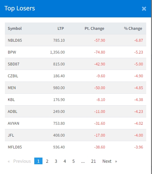शेयर बजार घटेसँगै आज नबिल डिभेञ्चर २०८५ को सेयर मूल्य सर्वाधिक घटेको छ । त्यस्तै, बिपिडब्लु लघुवित्त, सानिमा डिभेन्चर, सिटिजन्स बैंक लगायत कम्पनीको सेयर मूल्य घटेको छ ।