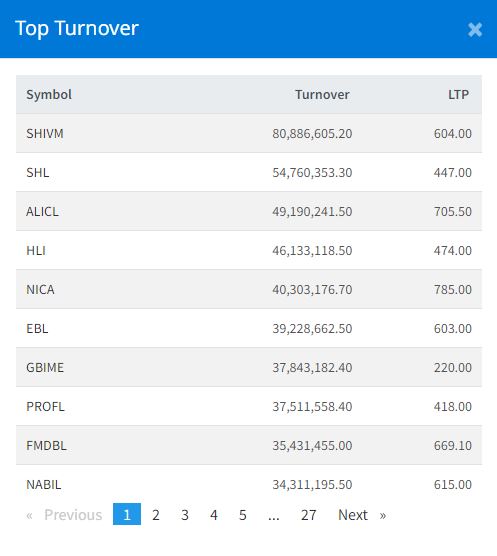 आज सेयर बजारमा सुधार आउँदा सबैभन्दा बढी शिवम् सिमेन्ट्सको कारोबार भएको छ । आज कम्पनीको ८ करोड ८८ लाख ६६ हजार रुपैया बराबरको कारोबार भएको छ । त्यस्तै, सोल्टी होटलको ५ करोड ४७ लाख ६० हजार , एसियन लाइफ इन्स्योरेन्सको ४ करोड ९१ लाख ९० हजार रुपैयाँ, हिमालयन लाइफ इन्स्योरेन्सको ४ करोड ६१ लाख ३३ हजार रुपैयाँ र एनआइसी एशिया बैंकको ४ करोड ३० लाख ३१ हजार रुपैयाँको कारोबार भएको हो ।
