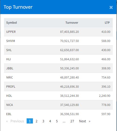 आज सेयर बजारमा गिरावट आउँदा अपर तामाकोशी हाइड्रोपावरको सर्वाधिक कारोबार भएको छ । कम्पनीको यस दिन ८ करोड ७२ लाख २६ हजार रुपैया बराबरको कारोबार भएको छ । त्यस्तै, शिवम् सिमेन्ट्सको ७ करोड ९ लाख २१ हजार रुपैयाँ ,सोल्टी होटलको ६ करोड २६ लाख ७ हजार रुपैयाँ, हिमालयन लाइफ इन्स्योरेन्सको ५ करोड १६ लाख ६२ हजार रुपैयाँ र ज्योति विकास बैंकको ५ करोड २ लाख ४६ हजार रुपैयाँको कारोबार भएको हो ।