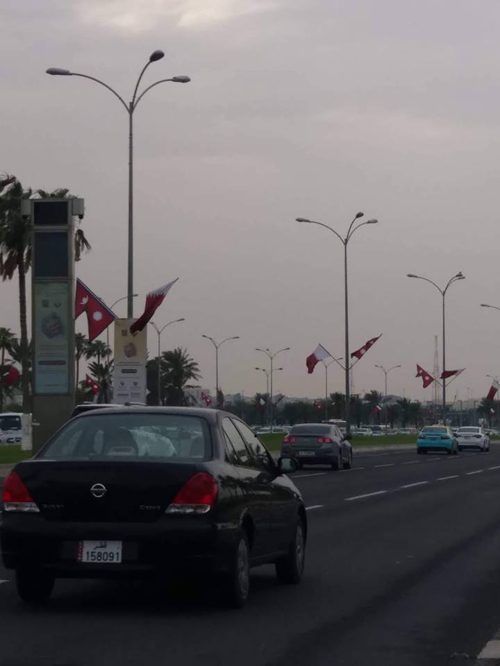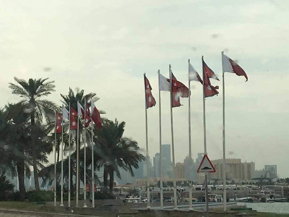 राष्ट्रपति भण्डारीको स्वागतमा दोहाका सडक छेउमा नेपाली झण्डा यसरी फहराइयो (फोटोफिचर)