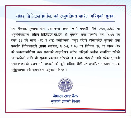 मोहर डिजिटलको अनुमतिपत्र खारेज