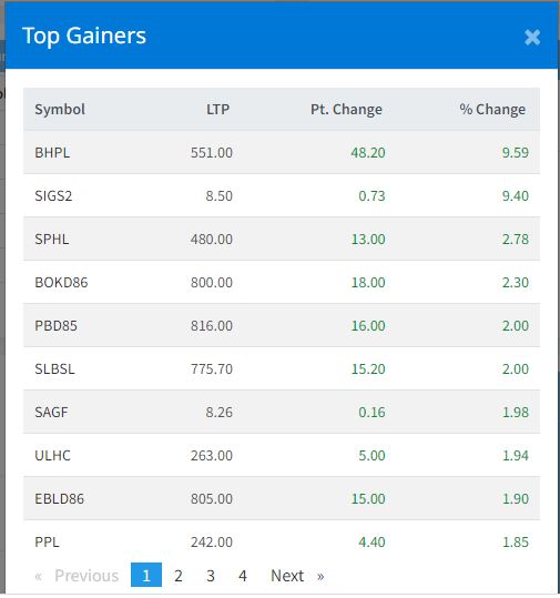 आज सेयर बजारमा गिरावट आउँदा बाराही हाइड्रोपावर पब्लिकको सेयर मूल्य सर्वाधिक बढेको छ । कम्पनीको सेयर मूल्य ९.५९ प्रतिशतले बढेको हो । त्यसैगरी, सिद्धार्थ इन्भेष्टमेन्ट ग्रोथ स्किम २ को ९.४० प्रतिशत, सयपत्रि हाइड्रोपावरको २.७८ प्रतिशत, बिओके डिबेञ्चर २०८६ को २.३० प्रतिशतले सेयर मूल्य बढेको छ ।