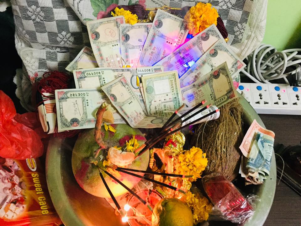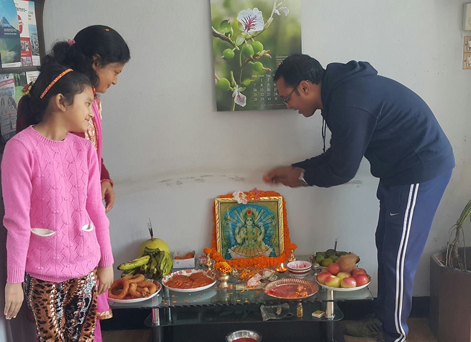 २१ कात्तिक, काठमाडाैँ । अाज नेपालीहरूले  बेलुकी घरघरमा धनधान्यकी देवी लक्ष्मीको पूजा गरेका छन । लक्ष्मीपूजा गर्दा नयाँ पात्र ल्याई त्यसमा धनदौलत राखी आँगनदेखि लिपपोत गरी चामलको पिठाले लक्ष्मीको पाइला बनाई ढुकुटीसम्म पु¥याई लक्ष्मीलाई घरमा अटल रहन स्तुति गरेर मनाइएको छ । धनसम्पत्तिलाई लक्ष्मीको प्रतीकका रुपमा पूजा गरिएको छ । लक्ष्मीको पूजा गर्दा विशेष रुपले दीपावली समेत गरिएको छ । महलक्ष्मीको पूजाआजा गर्ने यस रातलाई सुखरात्रि भन्ने गरिन्छ । (तस्बीरहरूः सामाजिक सञ्जाल)