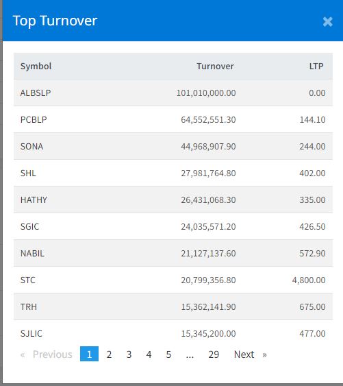 आज सेयर बजारमा गिरावट आउँदा आशा लघुवित्तको सेयर सर्वाधिक कारोबार भएको छ । कम्पनीको आज १० करोड १० लाख १० हजार रुपैयाँ बराबरको कारोबार भएको हो । त्यस्तै, प्राइम कमर्सियल बैंकको ६ करोड ४५ लाख ५२ हजार रुपैयाँ,सोनापुर मिनरल्सको ४ करोड ४९ लाख ६८ हजार रुपैयाँ, सोल्टी होटलको २ करोड ७९ लाख ८१ हजार रुपैयाँ र हाथवे इन्भेष्टमेन्टको २ करोड ६४ लाख ३१ हजार रुपैयाँको कारोबार भएको हो ।