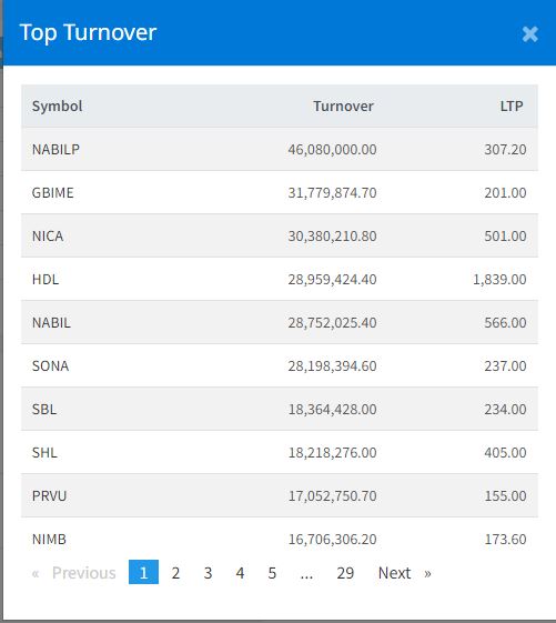आज सेयर बजारमा गिरावट आउँदा नबील बैंकको प्रमोटर सेयरको सबैभन्दा बढी कारोबार भएको छ । कम्पनीको आज ४ करोड ६० लाख ८० हजार रुपैयाँ बराबरको कारोबार भएको छ । त्यस्तै, ग्लोबल आइएमइ बैंकको ३ करोड १७ लाख ७९ हजार रुपैयाँ, एनआएसी एशिया बैंकको ३ करोड ३ लाख ८० हजार रुपैयाँ, हिमालयन डिस्टीलरीको २ करोड ८९ लाख ५९ हजार रुपैयाँ र नबिल बैंकको २ करोड ८७ लाख ५२ हजार रुपैयाँको कारोबार भएको हो ।