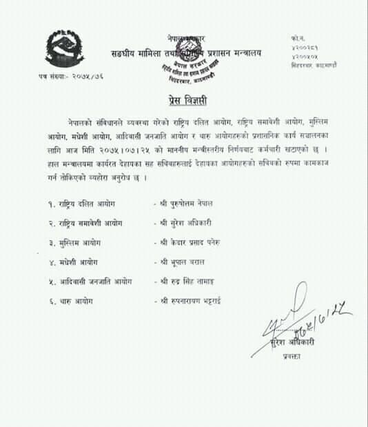 ६ वटा संवैधानिक अायोगमा सहसचिवलार्इ सचिव बनाएर पठाइयो, कुनमा को ? (सूचीसहित)