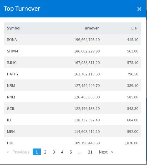 सेयर बजारमा गिरावट आएपनि आज सोनापुर मिनरल्सको सर्वाधिक कारोबार भएको छ । आज कम्पनीको १९ करोड ६६ लाख ६४ हजार रुपैयाँ बराबरको कारोबार भएको छ । त्यस्तै, शिवम् सिमेन्टको १८ करोड ६६ लाख २ हजार रुपैयाँ, सूर्यजयोति लाइफ इन्स्योरेन्सको १६ करोड ७० लाख ८८ हजार रुपैयाँ, हाथवे इन्भेष्टमेन्टको १६ करोड ३७ लाख ६२ हजार रुपैयाँ र नेपाल रिपब्लिक मिडियाको १२ करोड ७४ लाख ५४ हजार रुपैयाँको कारोबार भएको हो ।