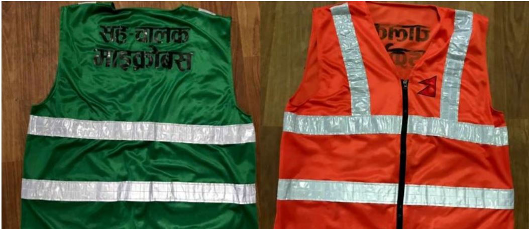 १ मंसिर, काठमाडौँ । ट्याक्सीचालकलाई ‘ड्रेस कोड’ तोकेको ट्राफिक प्रहरीले माइक्रो बसका चालक र सहचालकलाई पनि यो नियमभित्र ल्याएको छ । यो समाचार आजको नयाँ पत्रिका दैनिकमा छ । शनिबार (आज)देखि लागू हुने गरी माइक्रोका चालकलाई सुन्तला र सहचालकलाई हरियो रङको ज्याकेट लगाउन अनिवार्य गरेको हो । यी ज्याकेटमा फ्लोरिसेन्ट पनि राखिएको हुन्छ ।