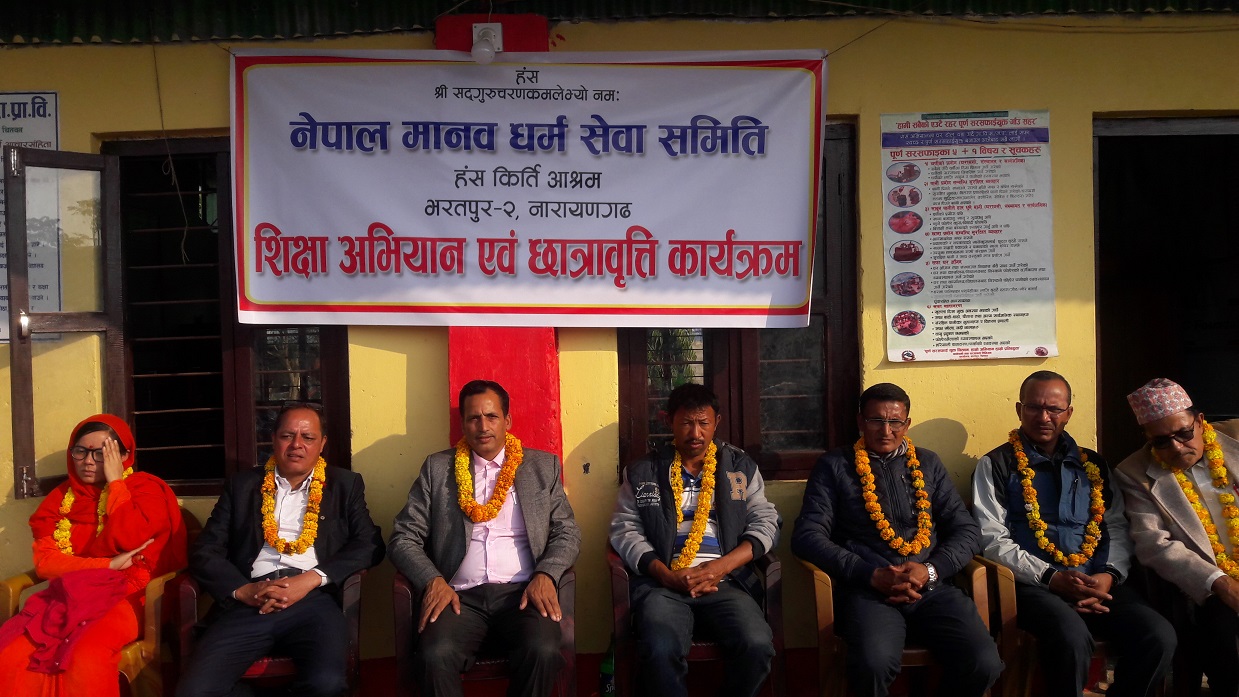 ८ मंसिर, चितवन । चितवनको कालिका नगरपालिका वडा नं. ३ स्थित जनहित रा.प्रा.वि. सिमलवस्तीमा अध्ययनरत ४० जना विद्यार्थीलाई छात्रवृत्ति प्रदान गरिएको छ भने विद्यालयका सबै विद्यार्थीहरुलाई स्टेशनरी सहयोग गरिएको छ । नेपाल मानव धर्म सेवा समिति, हंस किर्ती आश्रम भरतपुर २ चितवनको सहयोगमा सो विद्यालयमा छात्रवृत्ति तथा स्टेशनरी उपलब्ध गराइएको हो ।