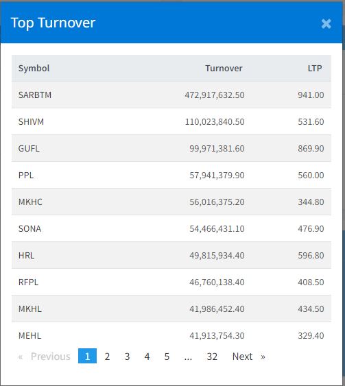 साेमबार सर्वोत्तम सिमेन्टको सेयर सर्वाधिक कारोबार भएको छ । आज कम्पनीको ४७ करोड २९ लाख १७ हजार रुपैयाँ बराबरको कारोबार भएको छ । त्यस्तै, शिवम् सिमेन्टको ११ करोड २३ हजार, गाेर्खाज फाइनान्सको ९ करोड ९९ लाख ७१ हजार रुपैयाँ, पिपुल्स पावर लिमिटेडको ५ करोड ७९ लाख ४१ हजार रुपैयाँ र मायाखोला हाइड्रोपावरको ५ करोड ६० लाख १६ हजार रुपैयाँको कारोबार भएको छ ।