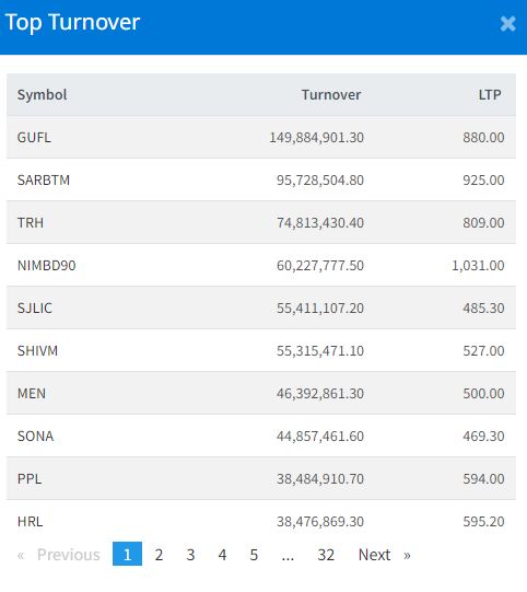 मंगलबार ३१२ कम्पनीको ६१ लाख ३१ हजार ६२१ कित्ता सेयर किनबेच हुँदा २ अर्ब २९ करोड १६ लाख ४५ हजार रुपैयाँ बराबारकाे कारोबार भएको छ । आज गोर्खाज फाइनान्सकाे सेयरका लगानीकर्ता झुम्मिएका छन् । यस दिन कम्पनीकाे गोर्खाजको १४ करोड ९६ लाख रुपैयाँ बराबरकाे काराेबार भएकाे छ । त्यस्तै, सर्वोत्तम सिमेन्टको ९करोड ५७ लाख रुपैयाँ, तारागाउँ होटलको ७ करोड ४७ लाख र एनआइएमबि डिबेञ्चर २०८० को ६ करोड २ लाख रुपैयाँको कारोबार भएको छ ।