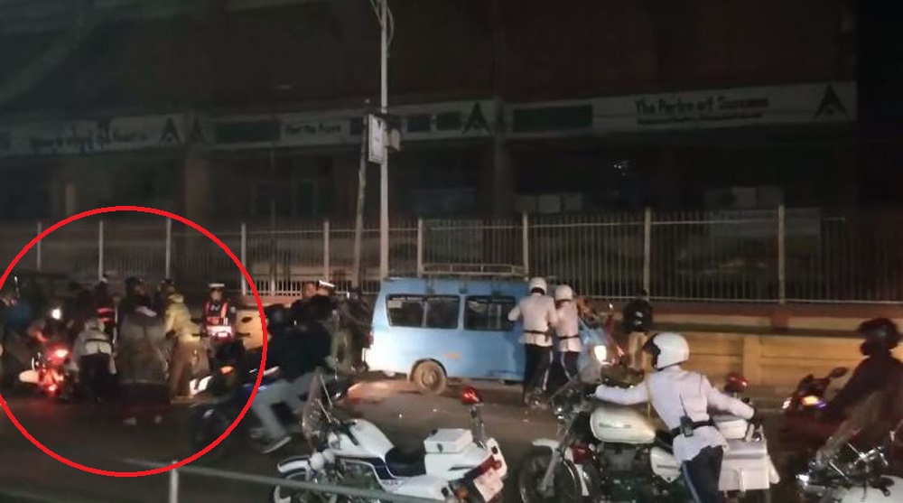 तीब्र गतिमा रहेको मोटरसइलक तीब्र गतिमै रहेको निलो माइक्रोमा ठोक्किएको प्रत्यक्षदर्शीले बताएका छन । माइक्रोसँग ठोक्किएर दुर्घटनामा परेका नेपाल प्रहरीका कमल गुरूङ गम्भीर घाइते भएका छन ।