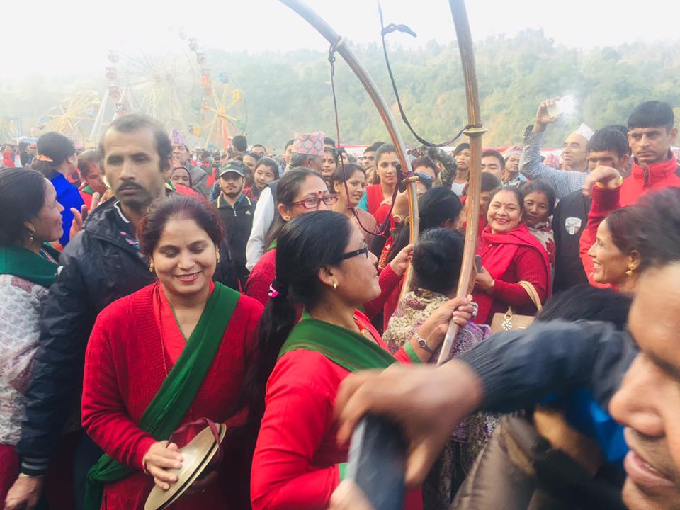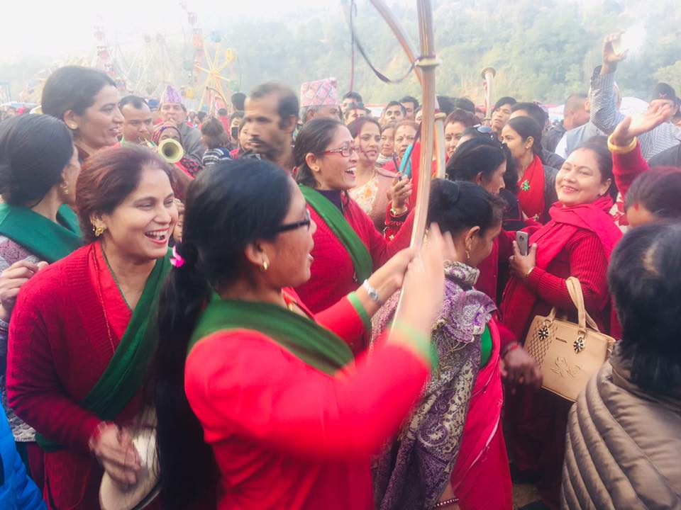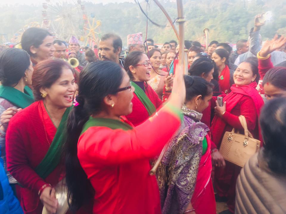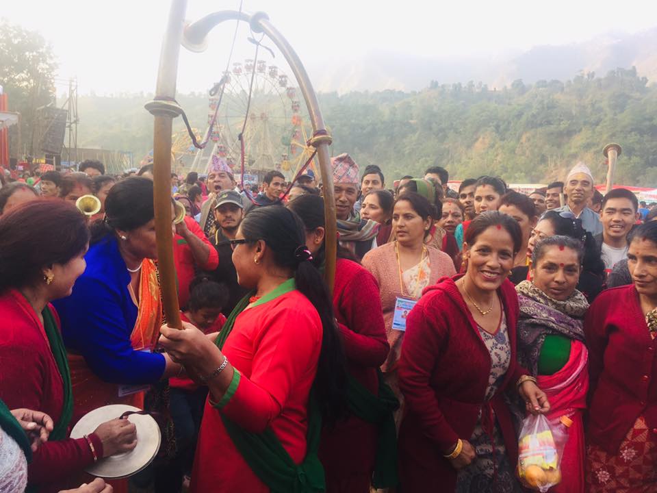 १४ मंसिर, धादिङ । धादिङका महिलाहरू नाैमती बजाउँदै शुक्रबार महोत्सवमा पुगेका छन । महिलाहरूले नरसिंहासिहत महोत्सवमा पुग्दा हजाराैँले ताली पिटेर स्वागत गरेका थिए । तस्बीरमा हेर्नुहोस धादिङका महिलाले बाजा बजाएर समाजमा देखाएको परिवर्तन ।