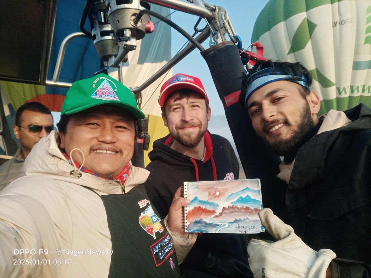 १७ पुस, गण्डकी । प्राज्ञ नगेन सिंहले पोखराको पामेमा सञ्चालित अन्तरराष्ट्रिय हट एयर बेलुन फेष्टिफलका अवसरमा हट एयर बेलुनमा उड्दै दुई कलाकृति सिर्जना गर्नुुभएको छ ।