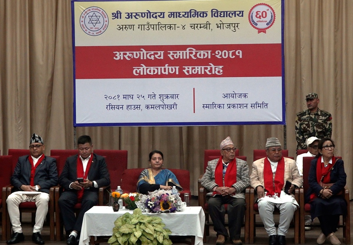 कार्यक्रममा पूर्व राष्ट्रपति भण्डारीले अरूणोदय स्मारिक लोर्कापण–२०८१ को लोकार्पण गर्नुभएको थियो । उक्त स्मारिकामा विद्यालयको स्थापना कालदेखि हालसम्मको इतिहास समेटिएको विद्यालयका प्रधानाध्यापक माधवप्रसाद पराजुलीले जानकारी दिनुभयो ।
