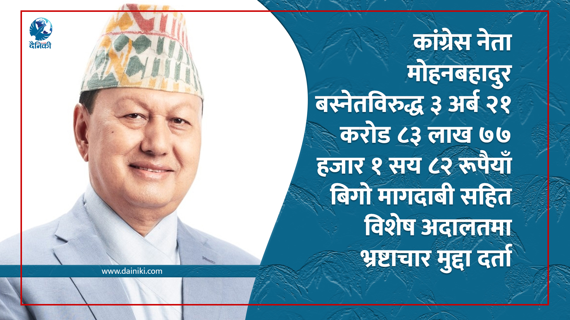 कांग्रेस नेता मोहनबहादुर बस्नेतविरुद्ध ३ अर्ब २१ करोडको भ्रष्टाचार मुद्दा