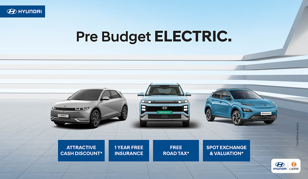यो प्रि-बजेट योजना ग्राहकहरूलाई विशेष अफरसहितको सुबिधा प्रदान गर्ने एक एक सक्रिय पहल हो । इभी गाडीका पारखीहरुका लागि प्रत्येक मोडेलमा विशेष अफरहरूको बारेमा थप जान्न र आफ्नो मनपर्ने हुन्डाई इलेक्ट्रिक गाडी बुक गर्न आफ्नो नजिकको हुन्डाई शोरूममा जान प्रोत्साहित गर्दछौं ।